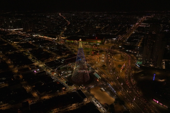 A tradicional Árvore de Mirassol, um dos principais símbolos das celebrações natalinas do Rio Grande do Norte, foi acesa às 19h desta sexta-feira, abrindo oficialmente a programação do Natal em Natal 2025, que seguirá até 6 de janeiro.